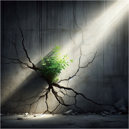 「万物皆有裂痕,那是光透进来的地方。」这句话很容易在我们的脑海中浮现一个画面:在一个阴暗的岩壁上,出现了一道裂缝,阳光透过裂缝,洒落在岩壁内一株顽强的树苗上,树苗在幽暗湿润的环境中因为这束光得以萌芽,拔地而起,奋力往上攀登。