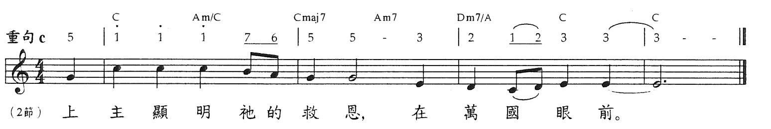1你们要向耶和华唱新歌!因为他行过奇妙的事,他的右手和圣臂施行救恩。2耶和华显明了他的救恩,在列国眼前显出公义;3记念他对以色列家的慈爱和信实。地的四极都看见我们神的救恩。*