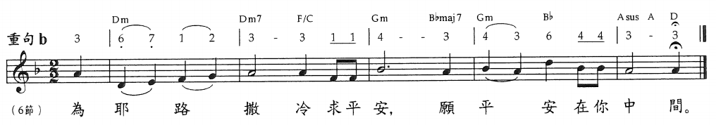 6你们要为耶路撒冷求平安:「愿爱你的人兴旺! 7愿你城中有平安!愿你宫内得平静!」8为我弟兄和同伴的缘故,我要说:「愿你平安!」 9为耶和华-我们神殿的缘故,我要为你求福! *