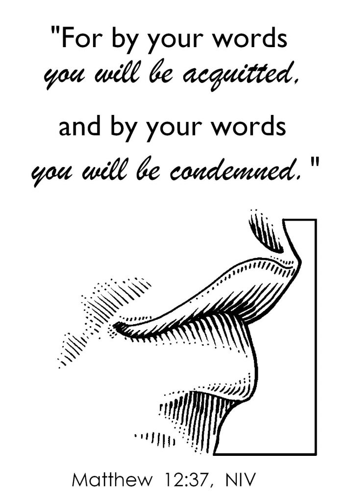 35-37节耶稣进一步宣告:“善人从善库里取出善来,恶人从恶库里取出恶来”,并警告:“人所说的每句话,在审判之日,都要交账”。耶稣并非否定行为的重要性,而是强调言语是内心与行为的纽带。善言能造就人、传递恩典。恶言能带来毁坏与审判。耶稣特别的提到“凡人所说的闲话,当审判之日,必要句句供出来”。这里的“闲话”原文是指多余无用的话,无意义的闲聊,更包括背后论断、谎言、轻诺、抱怨等。耶稣说:“凭你的话,要定你为义人,也要凭你的话,定你为罪人”。这并非说言语本身能使人称义或定罪的原由,而是言语与行为能显明人是否真正悔改、归向基督。也决定我们将来在神国里的地位,这是一件非常严肃的事。