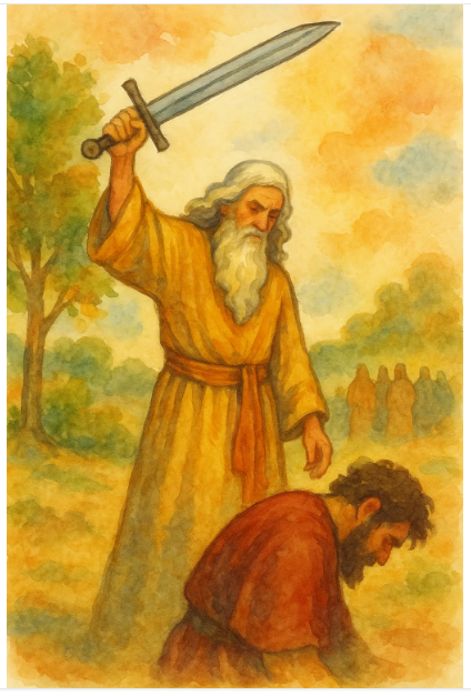 今天我们最后来看撒母耳记15章最后的几节经文的内容,经文内容的背景是神曾吩咐扫罗彻底除灭亚玛力人(15:3),但扫罗违背命令,怜惜亚甲王并留下上好的牛羊(15:9)。撒母耳宣告神弃绝扫罗王为王后,撒母耳亲自完成了这审判。
