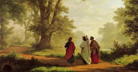 13正当那日,门徒中有两个人往一个村子去,这村子名叫以马忤斯,离耶路撒冷约有二十五里。14他们彼此谈论所遇见的这一切事。15正谈论相问的时候,耶稣亲自就近他们,和他们同行,16只是他们的眼睛迷糊了,不认识他。17耶稣对他们说:“你们走路彼此谈论的是什么事呢?”他们就站住,脸上带着愁容。18二人中有一个名叫革流巴的回答说:“你在耶路撒冷作客,还不知道这几天在那里所出的事吗?”19耶稣说:“什么事呢?”他们说:“就是拿撒勒人耶稣的事。他是个先知,在 神和众百姓面前,说话行事都有大能。20祭司长和我们的官府竟把他解去,定了死罪,钉在十字架上。21但我们素来所盼望要赎以色列民的,就是他。不但如此,而且这事成就,现在已经三天了。22再者,我们中间有几个妇女使我们惊奇,她们清早到了坟墓那里,23不见他的身体,就回来告诉我们说,看见了天使显现,说他活了。24又有我们的几个人往坟墓那里去,所遇见的,正如妇女们所说的,只是没有看见他。”25耶稣对他们说:“无知的人哪,先知所说的一切话,你们的心信得太迟钝了。26基督这样受害,又进入他的荣耀,岂不是应当的吗?”27于是从摩西和众先知起,凡经上所指着自己的话,都给他们讲解明白了。