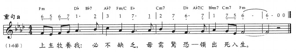 1耶和华是我的牧者,我必不致缺乏。 2他使我躺卧在青草地上,领我在可安歇的水边。 3他使我的灵魂甦醒,为自己的名引导我走义路。 *