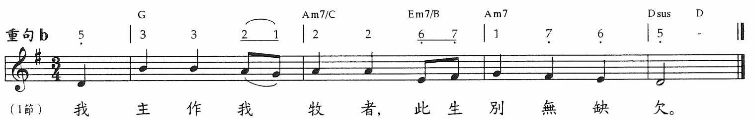 1耶和华是我的牧者,我必不致缺乏。 2他使我躺卧在青草地上,领我在可安歇的水边。 3他使我的灵魂甦醒,为自己的名引导我走义路。 *